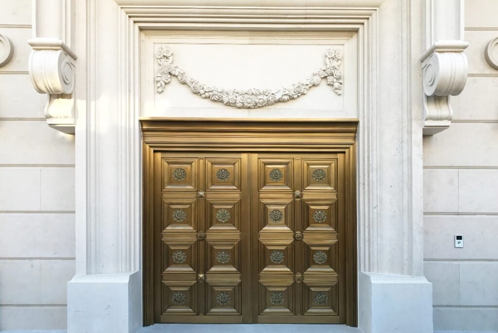 Explore our luxurious aluminium entrance doors, featuring exquisite copper, brass, and bronze detailing.